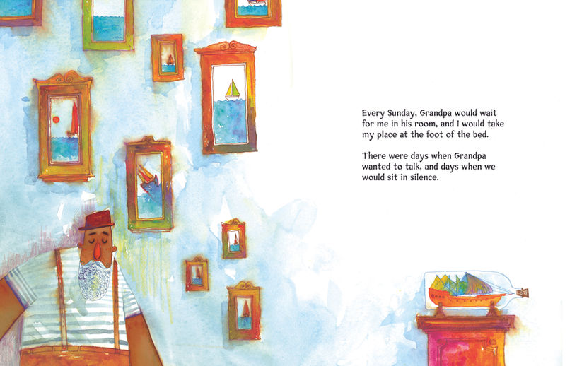 Every Sunday, grandpa waited for me in his room, and I took my place at the foot of the bed. There were days when grandpa wanted to talk, and days when we sat in silence. Then one day, grandpa began telling me stories about his life at sea. Tales of love and adventure and danger on the ocean waves. And that’s when I learned who my grandpa really was...